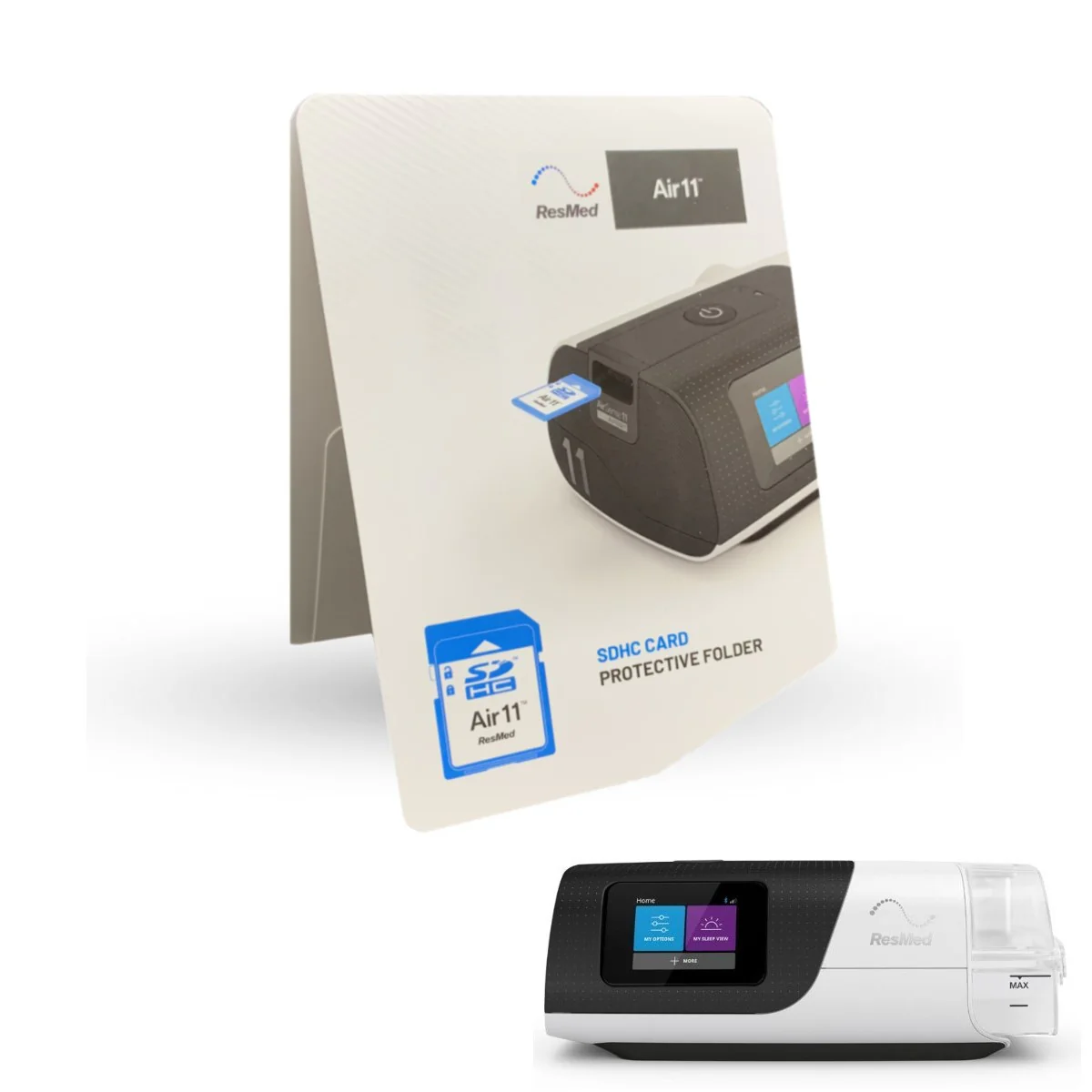The ResMed AirSense 11 SD card gathers and stores data during the patient's sleep therapy. When you need to assess and monitor treatment, all you need to do is simply remove the card, put it in the SD Card Protective Folder, and send it to your doctor. The protective folder enables you to safely send your therapy data card from your AirSense 10 device, to your doctor.